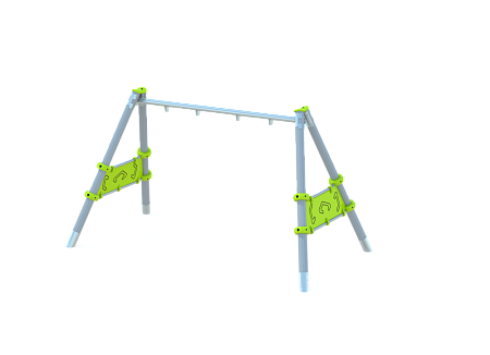 Качели состоят из столбов выполненных из древесно-полимерного композита (ДПК) диаметром 125 мм, имеют профиль с канавками. Стальной перекладины расчитанной на крепление двух сидений. Все металлические элементы выполнены из стали с оцинкованным покрытием, с антивандальными и безопасными соединениями между собой. Оцинковка металла производится методом электрохимической гальванизации. Боковых накладок выполненых из HDPE пластика. Все используемые материалы закупаются у лучших производителей, что гарантирует высокие стандарты качества.