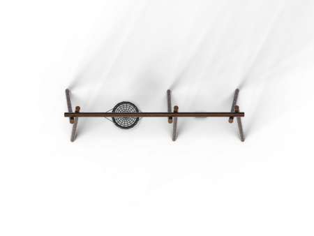 Качели двойные для подвеса гнездо и двух сидений выполнены из восьми брёвен. Брёвна выполнены из лиственницы, имеют естественную природную форму, тщательно отшлифованы и обладают высочайшей прочностью. Брёвна покрыты в три слоя специальной пропиткой финского производства, содержащую антисептики и обеспечивающую ультрафиолетовую защиту от солнечного воздействия. Сетка подвеса гнездо изготовлена из многожильного армированного износостойкого каната.