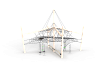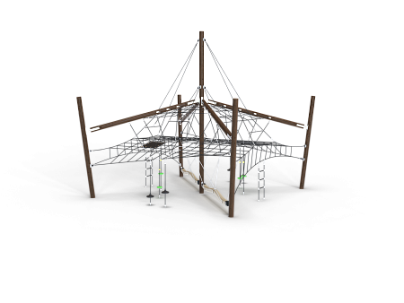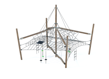 Комплекс выполнен в виде комбинации гимнастических элементов выполненных из столбов, бревен и сеток, в совокупности образующих купол с сеточным обвесом.