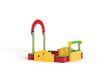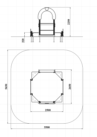 Песочница состоит из столбов с прикрепленными к ним по периметру фанерными ограждениями. Вход в песочницу выполнен в виде декоративной фанерной арки. На столбах напротив входа установлен спойлер.
