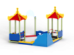 Песочный дворик - модульная конструкция из игровых и развивающих элементов с морской тематикой. Конструкция оборудована двумя башнями - беседками, одной аркой, песочницей и ограждением по периметру из деревянного бруса и фанеры с художественным оформлением. Башни оборудованы крышей, фанерными ограждениями и детскими счетами с пластиковыми бубликами. Арка выполнена из фанеры в форме золотой рыбки с художественным оформлением. Песочница с четырьмя фанерными накладками и декоративным фанерным ограждением в наружном углу в форме морской волны с художественным оформлением в виде золотых рыбок.