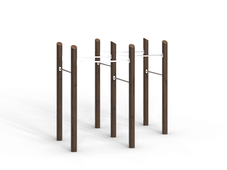 Первый - деревянные столбы и брёвна выполнены из лиственницы, имеют естественную природную форму, тщательно отшлифованы и обладают высочайшей прочностью.