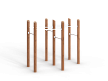 Первый - деревянные столбы и брёвна выполнены из лиственницы, имеют естественную природную форму, тщательно отшлифованы и обладают высочайшей прочностью.