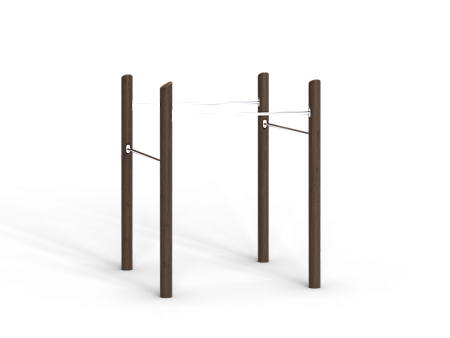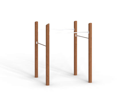 Первый - деревянные столбы и брёвна выполнены из лиственницы, имеют естественную природную форму, тщательно отшлифованы и обладают высочайшей прочностью.