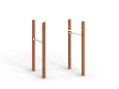 Второй — деревянные столбы и брёвна выполнены из клееной сосновой древесины с последующим оцилинриванием, имеет ровную цилиндрическую поверхность.