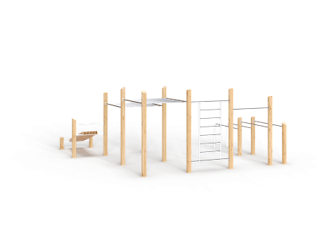 Первый - деревянные столбы и брёвна выполнены из лиственницы, имеют естественную природную форму, тщательно отшлифованы и обладают высочайшей прочностью.