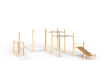 Первый - деревянные столбы и брёвна выполнены из лиственницы, имеют естественную природную форму, тщательно отшлифованы и обладают высочайшей прочностью.
