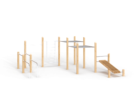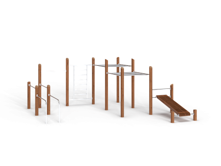 Первый - деревянные столбы и брёвна выполнены из лиственницы, имеют естественную природную форму, тщательно отшлифованы и обладают высочайшей прочностью.