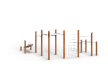 Первый - деревянные столбы и брёвна выполнены из лиственницы, имеют естественную природную форму, тщательно отшлифованы и обладают высочайшей прочностью.