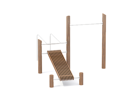 Первый - деревянные столбы и брёвна выполнены из лиственницы, имеют естественную природную форму, тщательно отшлифованы и обладают высочайшей прочностью.