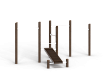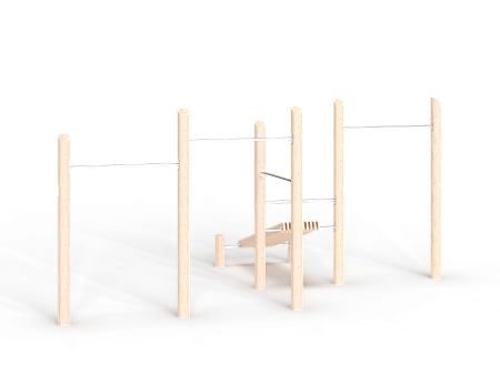 Первый - деревянные столбы и брёвна выполнены из лиственницы, имеют естественную природную форму, тщательно отшлифованы и обладают высочайшей прочностью.
