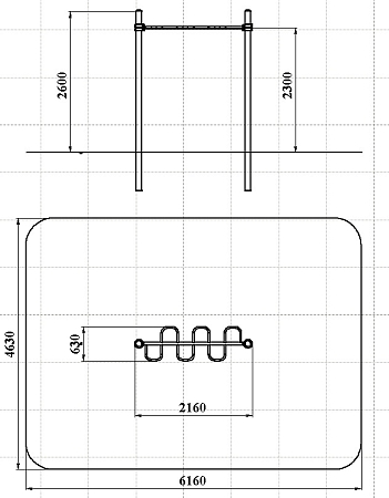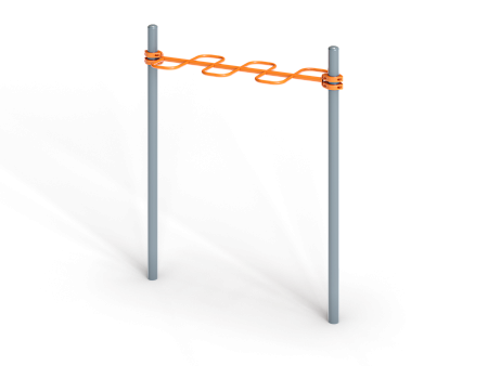 Воркаут состоит из двух несущих столбов и рукохода-змейки с зажимными хомутами.