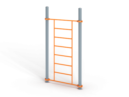 Воркаут состоит из двух несущих столбов и шведской стенки с зажимными хомутами.
