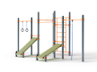 Воркаут состоит из двенадцати несущих столбов, девяти перекладин, перекладины с канатом, перекладины с гимнастическими кольцами, шведской стенки и двух наклонных скамей из бруса с зажимными хомутами.