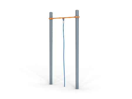Воркаут состоит из двух несущих столбов и перекладины с канатом с зажимными хомутами.
