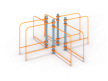 Воркаут состоит из четырех несущих столбов и восьми брусьев с зажимными хомутами.